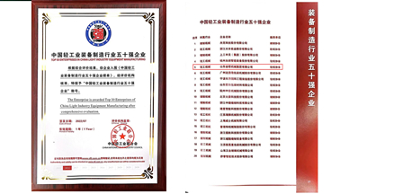 6月25日,以“強(qiáng)化科技創(chuàng)新 服務(wù)美好生活”為主題的中國輕工業(yè)百強(qiáng)企業(yè)高峰論壇在京舉行。 論壇發(fā)布了2018年度中國輕工業(yè)百強(qiáng)企業(yè)、中國輕工業(yè)食品行業(yè)50強(qiáng)企業(yè)和中國輕工業(yè)裝備制造行業(yè)30強(qiáng)企業(yè)榜單。 我公司被授予“中國輕工業(yè)裝備制造行業(yè)30強(qiáng)企業(yè)”榮譽(yù)稱號。這是我公司連續(xù)三年榮登“中國輕工業(yè)裝備制造行業(yè)30強(qiáng)企業(yè)”榜單,充分彰顯了公司的綜合實(shí)力。